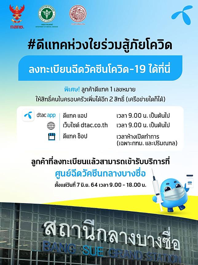May 27, 2021 · สำหรับการลงทะเบียน ฉีดวัคซีนโควิด ตอนนี้มีเพิ่มมาอีกช่องทางผ่านทางค่ายมือถือต่างๆ ได้แก่ ais, true, dtac และ nt ลูกค้า tot mobile และ my ใครเป็นลูกค้าค่ายไหน.